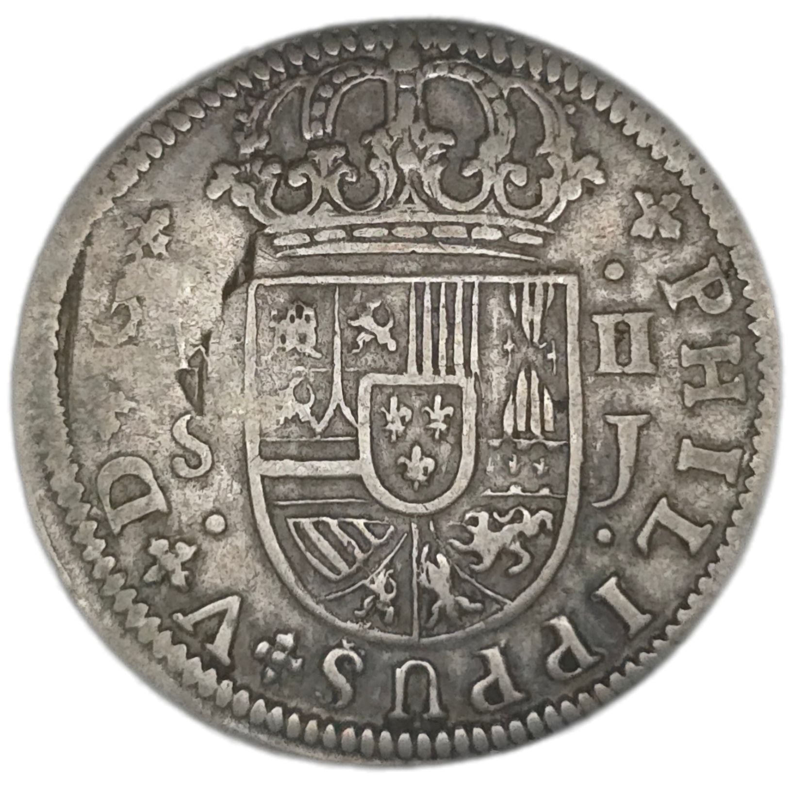 This 1732 Spanish 2 Reales is an authentic 18th‑century silver coin from the reign of King Philip V.