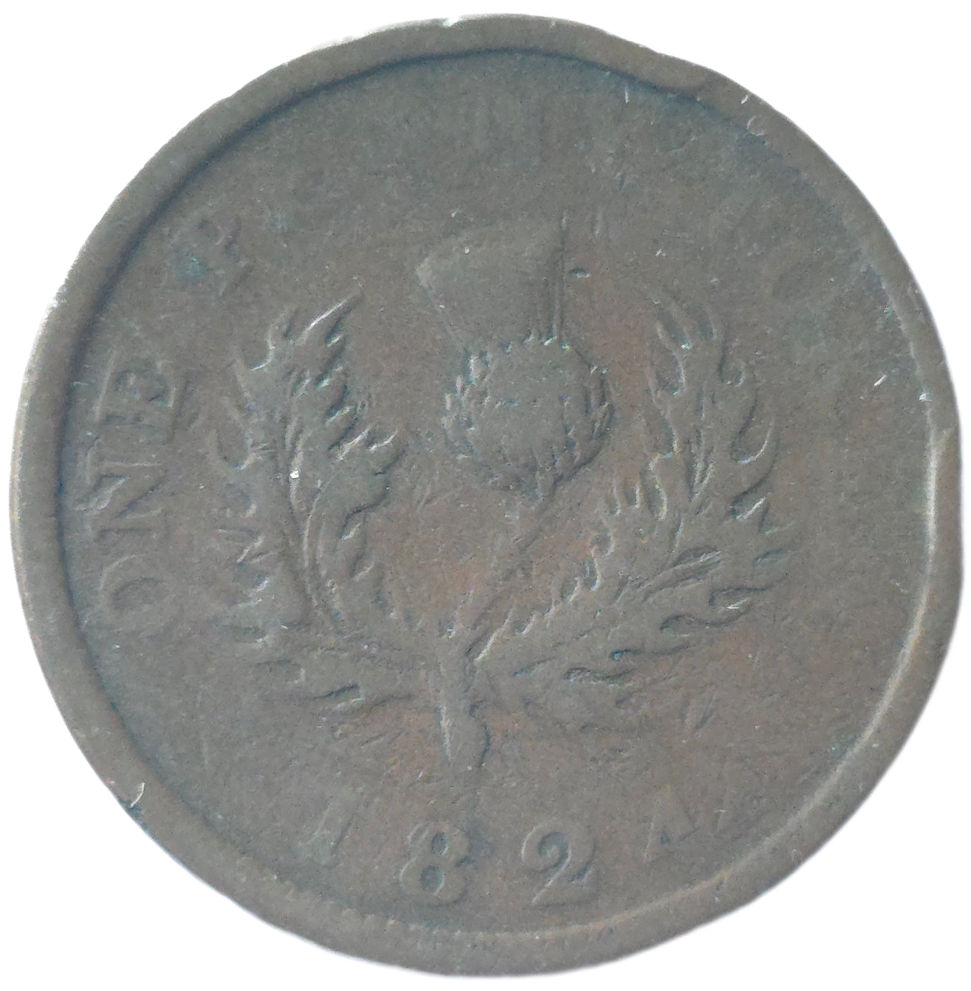 Obverse features the laureate head of King George IV. The reverse displays a prominent thistle, a design element that reflects the token’s provincial character and public reception.