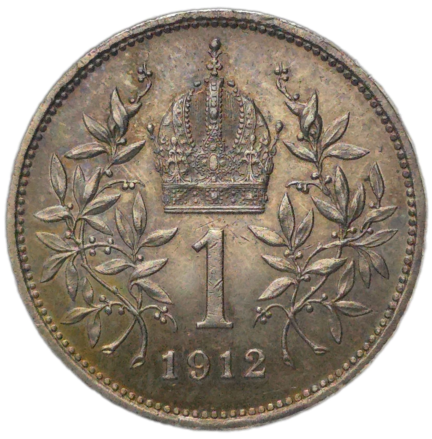 An authentic 1912 Austrian Empire 1 Corona silver coin, a compact piece from the Habsburg era. From the historic Austrian Empire, it captures early 20th-century European coinage.