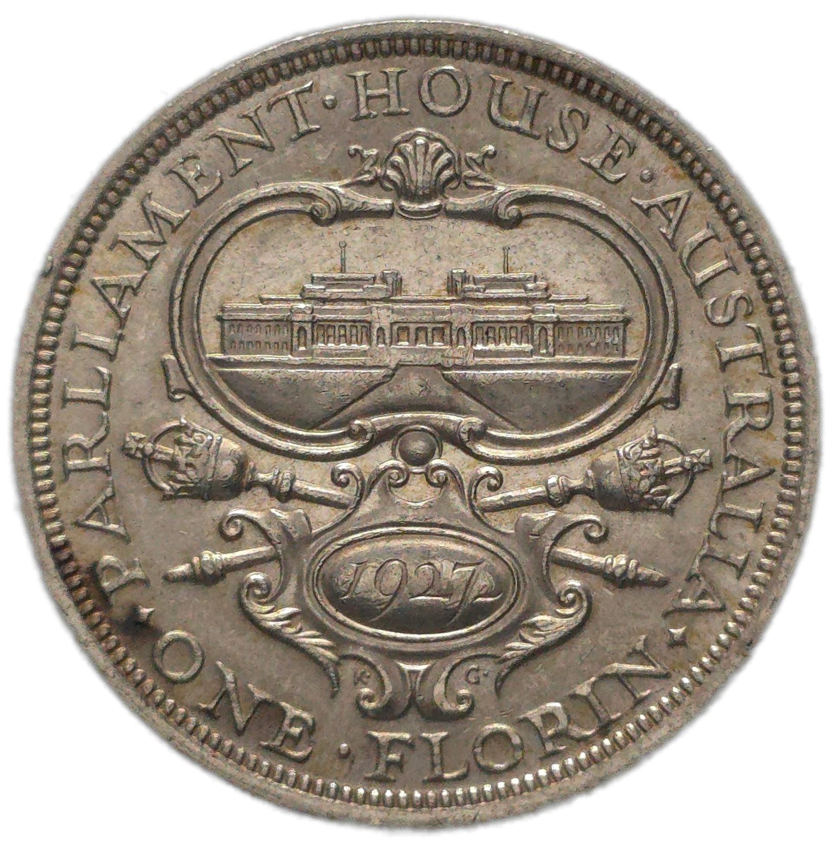 Reverse: Shows a detailed depiction of the original Parliament House with the date "1927" prominently displayed beneath the building.