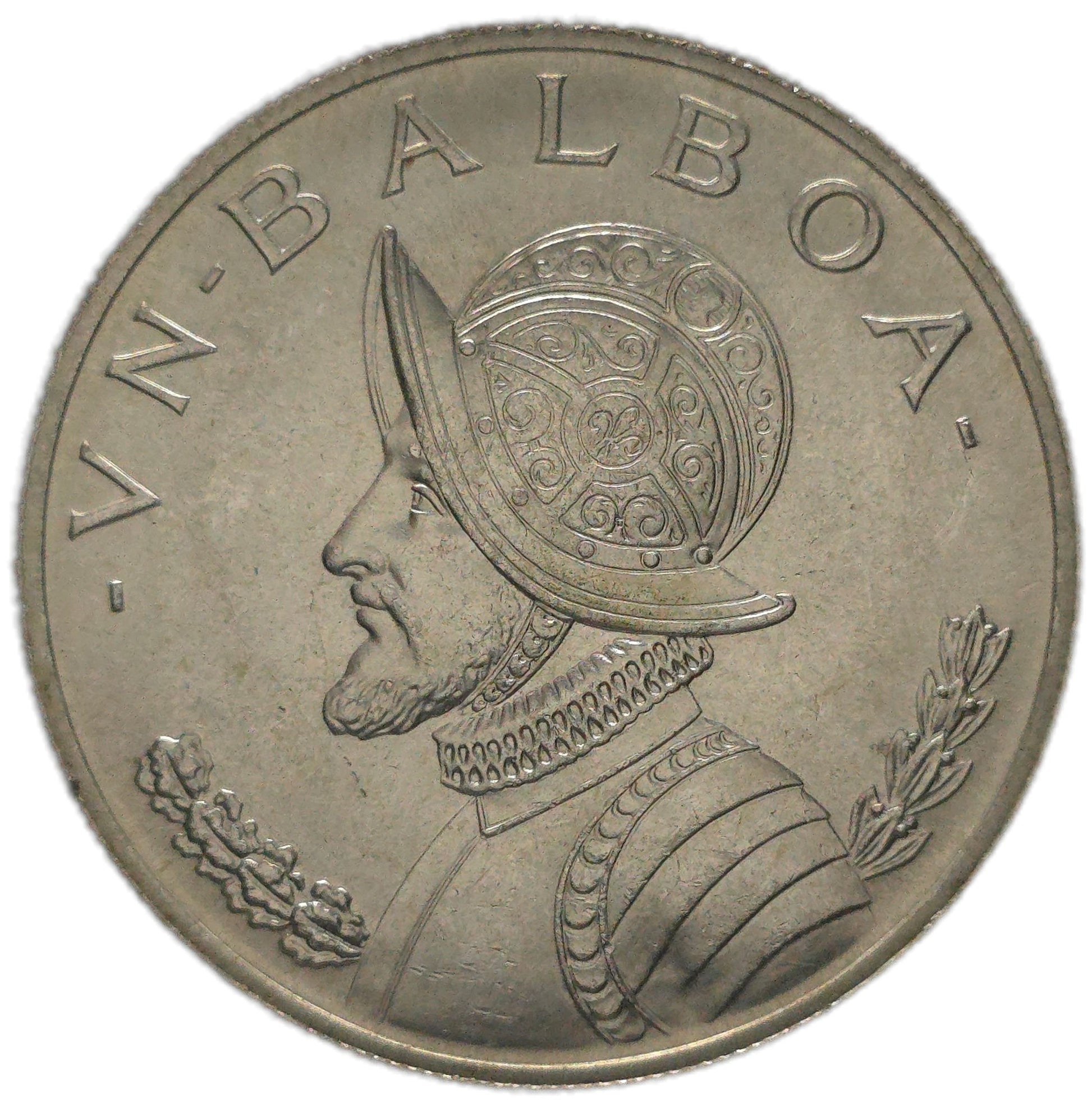 Obverse: Features an armored bust of Vasco Núñez de Balboa rendered in fine proof detail, showing portraiture and period armor with sharp relief. Reverse: Shows Panama’s coat of arms with crisp relief and mirrored fields that highlight the design.