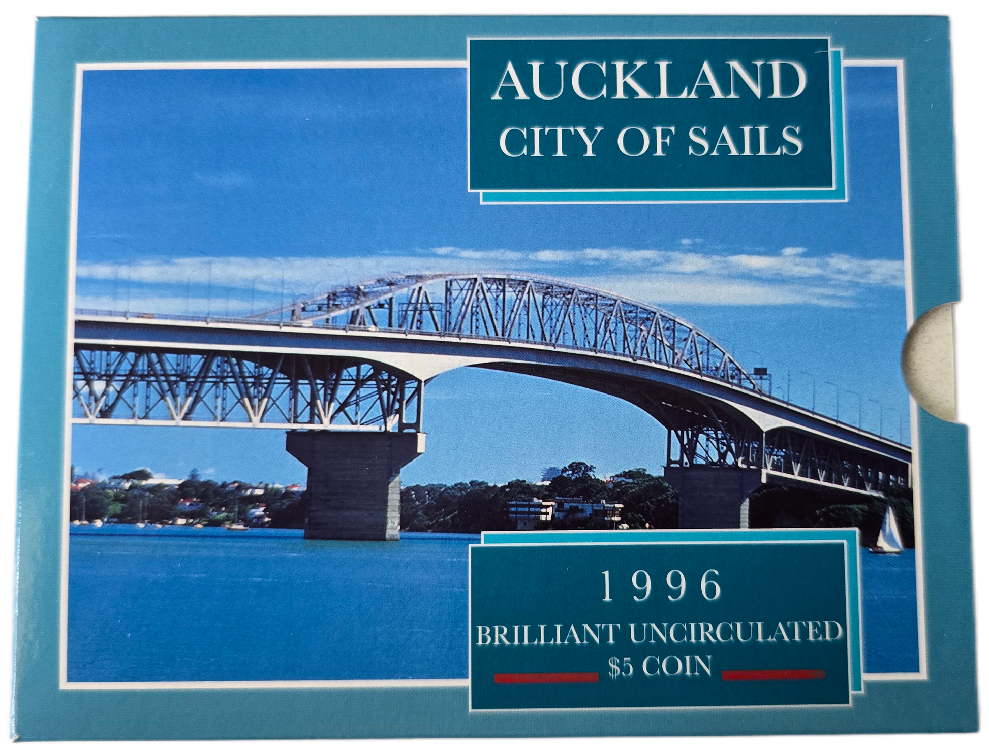 1997 Auckland, New Zealand Uncirculated $5 Coin. Mintage: 6,000 (est. 4150).